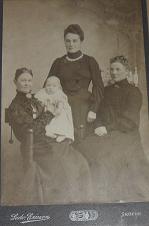 En bild tre generationer kvinnor. Det är Britas mor Märtha född 11 november 1860 i Askersund som sitter stolt med någon av hennes barnbarn i famnen. Brita i bakgrunden.
