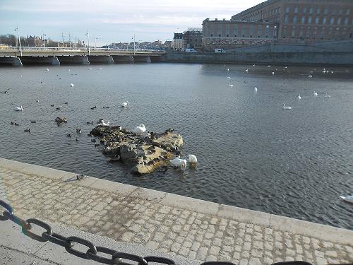 Strömmen var full av knölsvan och fiskmås som skränade. De trivdes också i solen den här dagen. Det här var bättre än Krigsarkivet. Det får bli en dag när inte solen skiner.