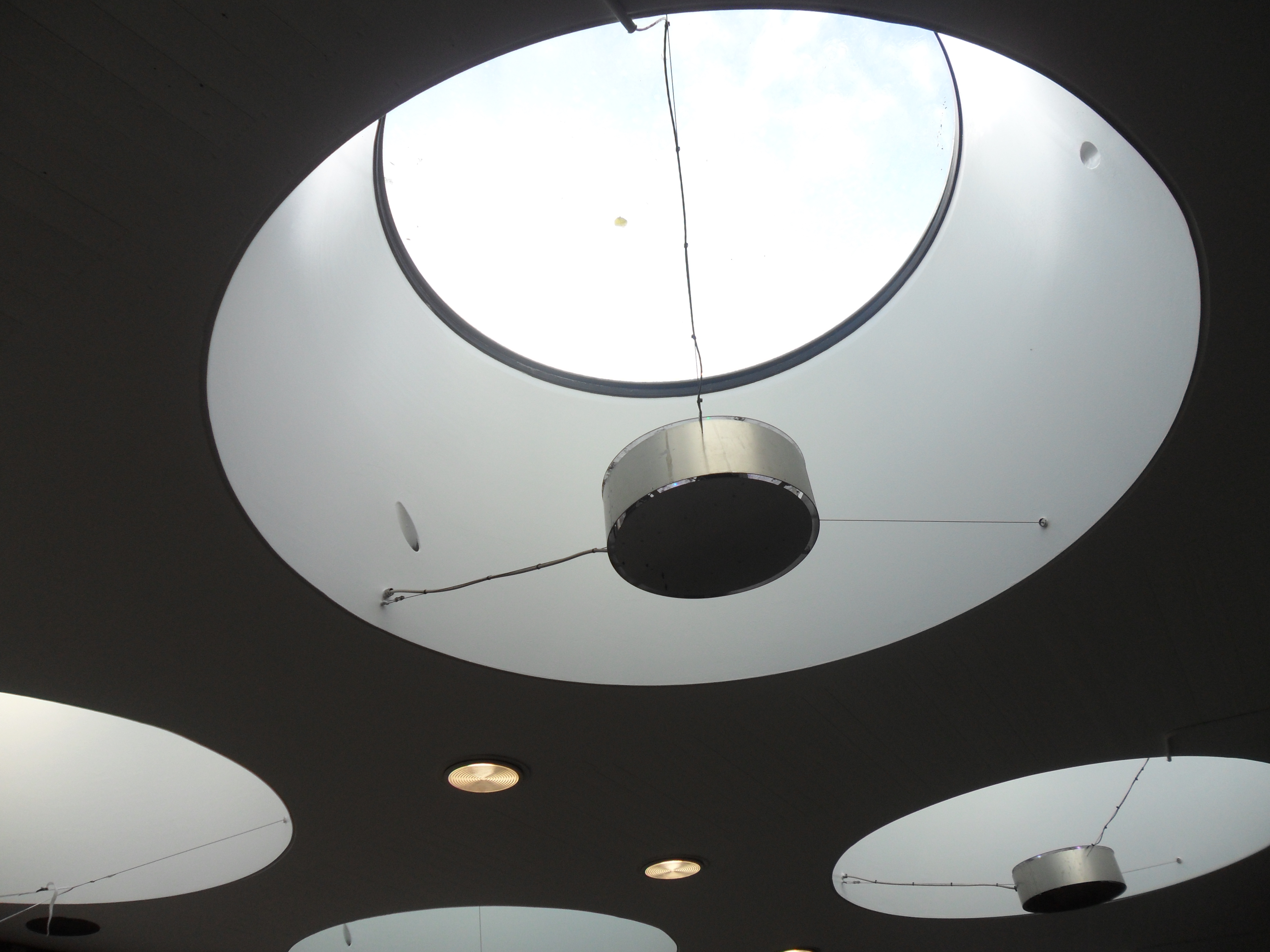 En bild från Sergelgången. En del som skapades efter rivningen av Stockholm är ganska fint och armaturen och ljuset skiner in genom dem är lite spännande. Det åtminstone jag protesterade emot var att allt även sånt som bara behövde lite upprustning revs. Men samma problem är det nu med det nya Slussen. Varför inte renovera den? Nej för nu har det gått så långt att det antagligen inte går.