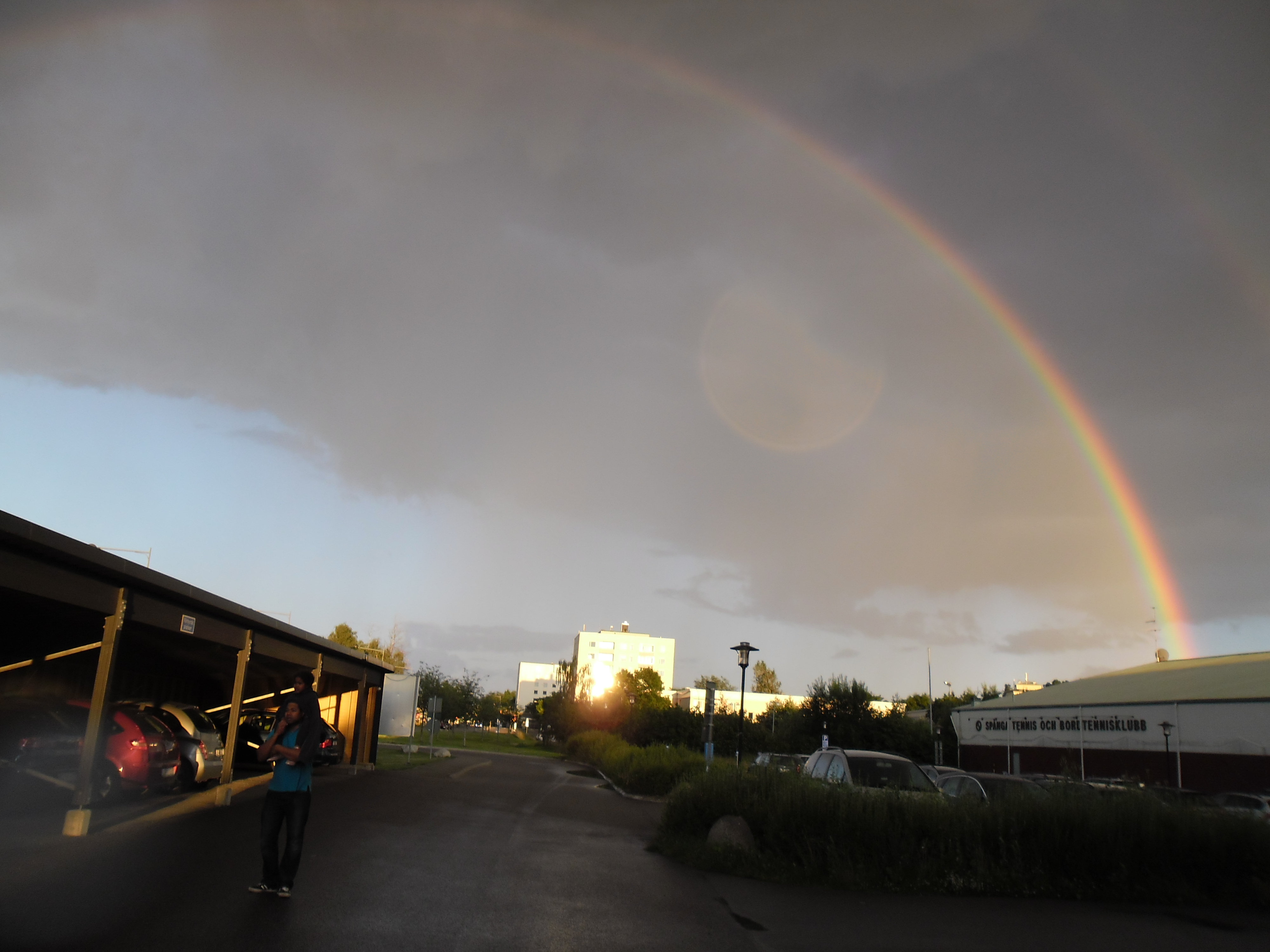 Först en bild på en regnbåge över Spånga förra året. Den är så fin så jag ville visa den för er. Det sägs att det ska finnas en massa guld vid regnbågens slut, men man kommer ju aldrig dit. Vi hör att något är gratis och tror att det är så och försäljare av olika ting gör oss besvikna därför att det nästan alltid visar sig vara villkorat. Som inom släktforskningen.