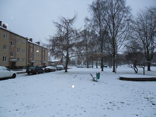 När jag lämnade biblioteket i Falköping igår eftermiddag var det vitt och vackert och lite snömoddigt. Hela veckan har jag sökt efter Garvaren Johan Peter Warodell och samtidigt fått veta mycket intressant om gamla och nya Falköping. Hur staden såg ut för 150 år och hur man kämpade med att få järnvägsstation och nytt kommunalhus och samtidigt bevara så mycket som möjligt av det gamla Falköping. Som nyinflyttad tycker jag att man lyckats bra. En bild från Falköpings torg av idag.