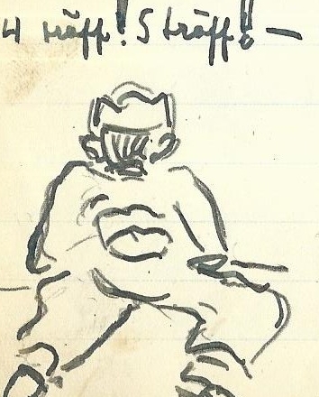 Gevärsexercisen i grund snö satte minnesreaktonen på ett prov om den bestod till hälften blott. Jag presterade en ganska, oregelmässig bajonettfäktning. Vid ett kolvslag flög förresten böljan i en vid båge bortemot stridsvagnarna.