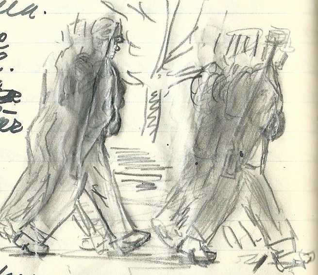 Äntligen en gammal vän på backen. Vem mötte jag i morgondiset, jo 242 Carlsson, löjtnant Dahlstrands och den övriga officerskaderns skyddsling. Han var jämmerlig att skåda i modell tie, bred och skrynklig och tafatt. Fy fan Edvard, vad man känner sig ensam, håhå, att man skulle möta dig här. Å Kihlhagen sen! Kommer du ihåg vad han sa när vi skiljdes sist?