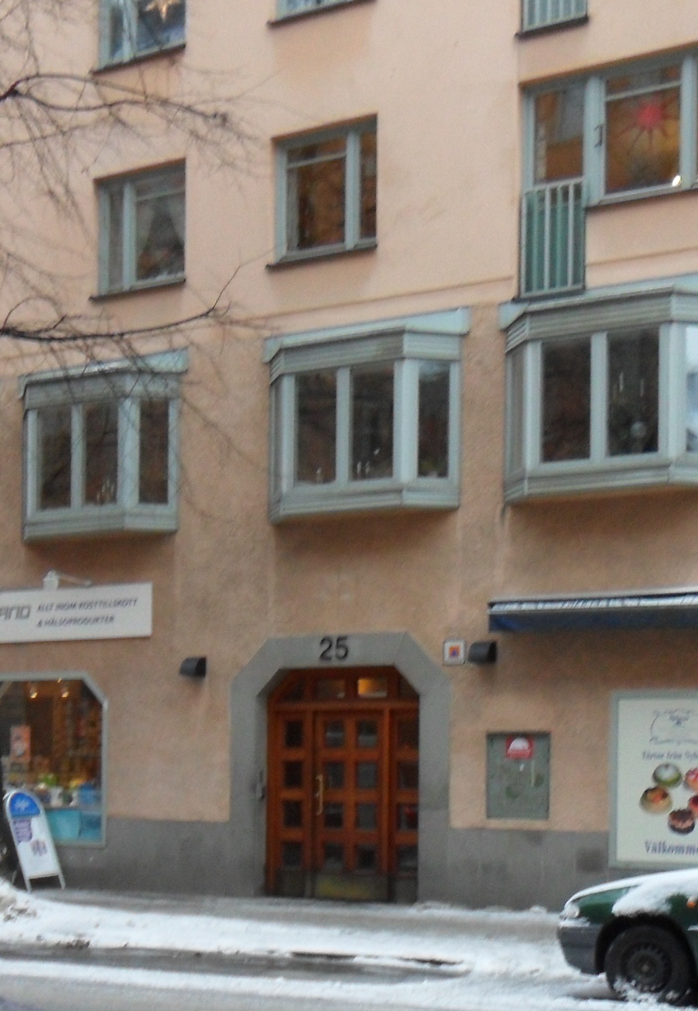 Ett stycke längre åt vänster tar Katarinahissen steget ut. Folk myllrar upp ur tunnelbanans utsläpp och förstadsvagnarna pilar runt. Många balter färdas där bl. a. har jag träffat kverulanten dr Laansso. F. ö. lär det finnas c:a 5000 estländare i Stockholm första Sturetrappan följer den långa Zornsgatan upp och ned till Hornsplan. Söder är som ett förstorat Töreboda, brokigt, smått, småfolksmässigt. En sympatisk stadsdel, starkt arbetarbetonad. På sistone har den börjat dominera bland den unga intelligentsian. Inom diverse idrotter intar den en framskjuten ställning. På sitt sätt är Söder den enda riktiga storstadsstadsdelen (den har sitt slödder och tjuvpack, sin parias skikt med star sammanhållning, stark lokal känsla). Affärslivet är smått, skumpigt utan raffinemang.